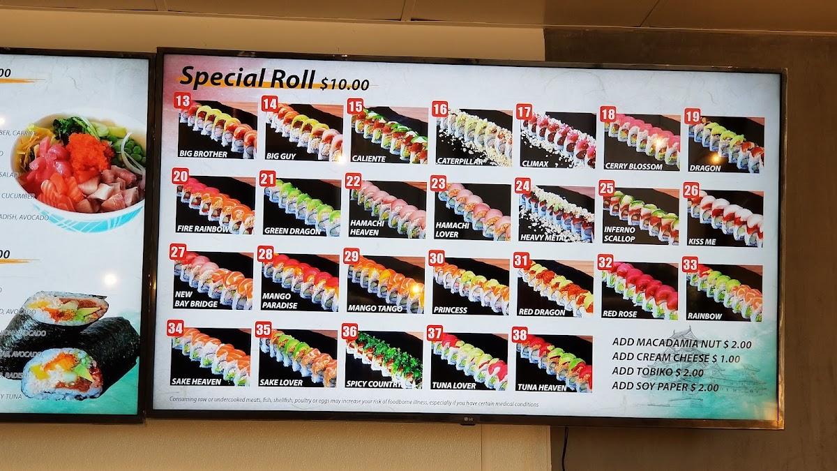 The menu boasts a delectable selection of dishes that cater to both sushi aficionados and newcomers alike. Dive into their Nigiri Sushi selections, which include the luscious Salmon Nigiri and the delectable Tuna Nigiri, both priced at a reasonable US$7.99. Each piece is crafted with precision, presenting fresh seafood nestled atop perfectly seasoned rice, showcasing the chefs' dedication to authenticity and flavor. For those craving a twist, the Rainbow Roll is a must-try; it's a delightfully vibrant assortment that is as pleasing to the eyes as it is to the palate.